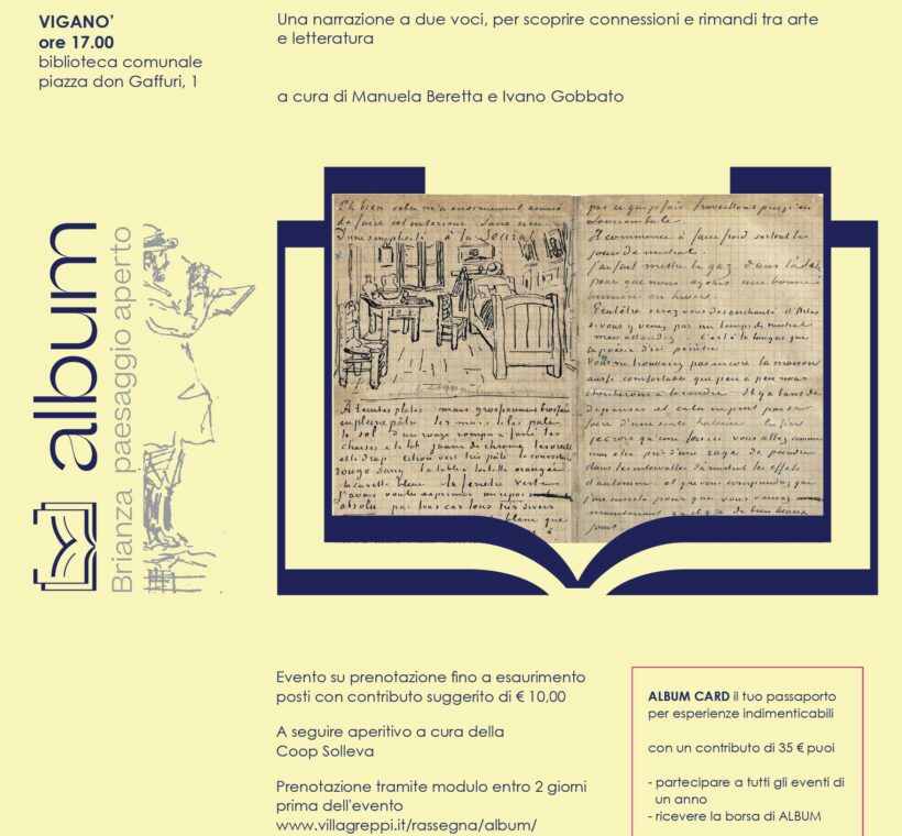 album Narrazione tra letteratura e arte PAGINE ILLUSTRATE VINCENT VAN GOGH TRA LETTERE E COLORI sabato 8 Novembre 2025 ore 17.00 Viganò (LC) Scopri di più ALBUM BRIANZA PAESAGGIO APERTO