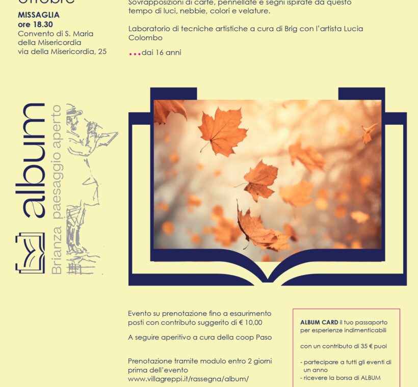 Sovrapposizioni di carte, pennellate e segni ispirate da questo tempo di luci, nebbie, colori e velature. a cura di BRIG *….dai 16 anni Evento accompagnato da aperitivo a cura della…